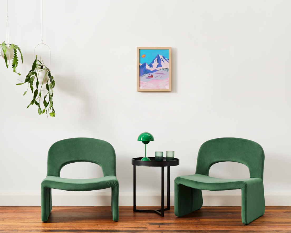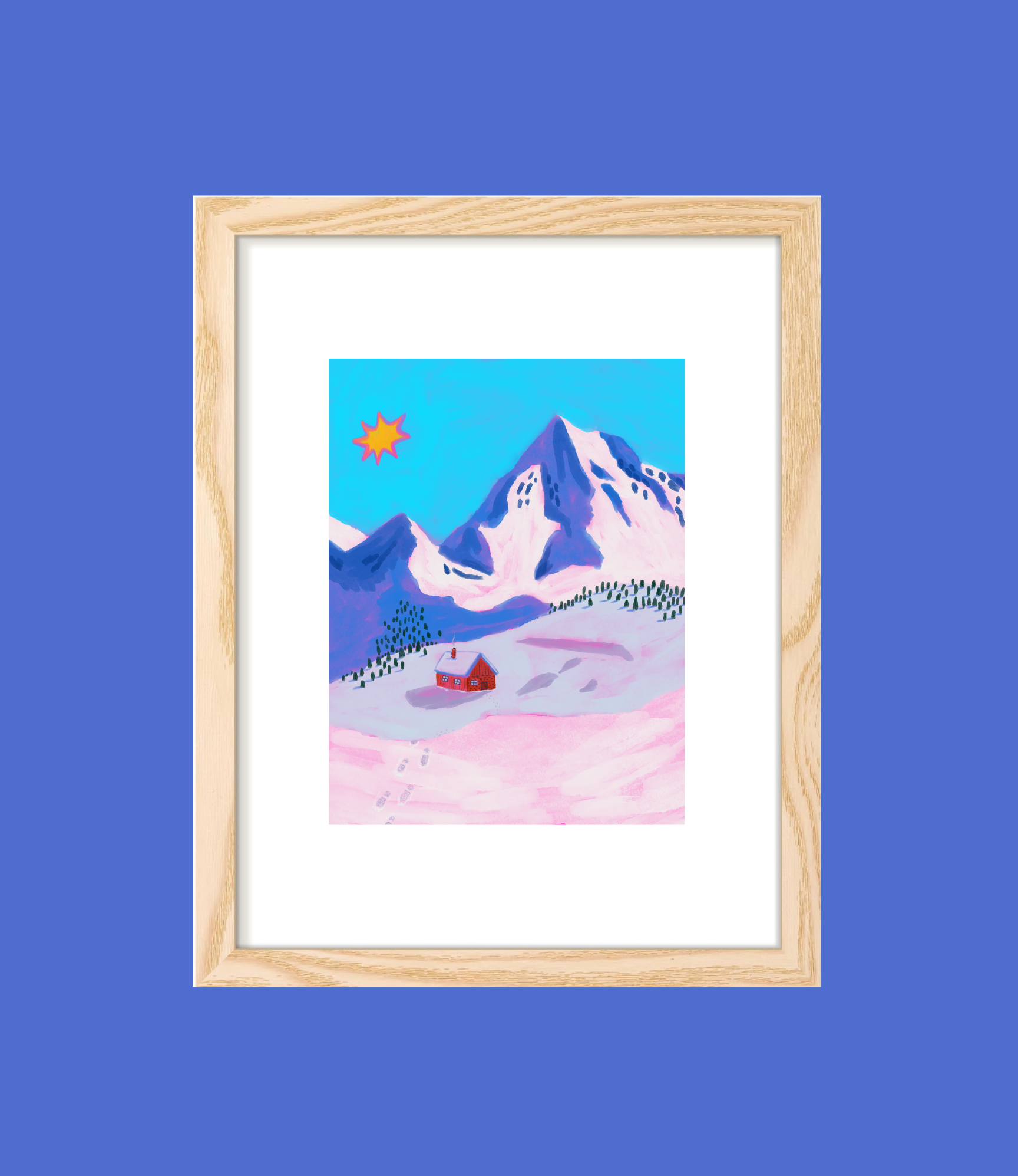 Snowy Peaks takes us to the winter mountain cabin of our dreams where we can read all the books we want while lounging by a cracking fire with a good dog and a hot drink. Printed locally in San Diego on thick semigloss paper and signed on the back.